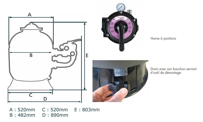 - Filtrul cu nisip, modelul Powerline are o conexiune laterala si este o solutie practica pentru curatarea mecanica de inalta calitate a bazinelor de inot.