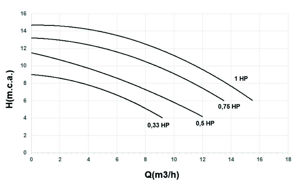 • Gama de putere: 1/3 – 1 CP în 230 V 50 Hz