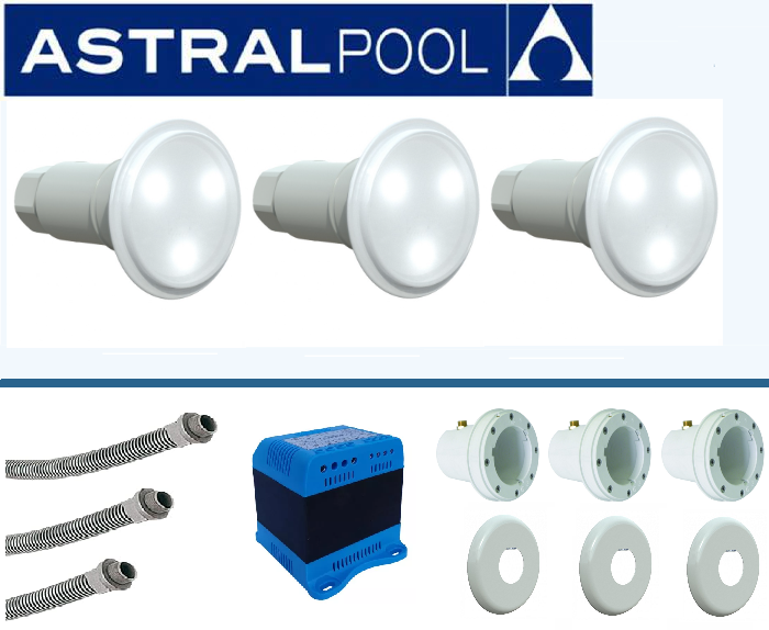pachet complet cu lumina alba rece pentru piscine cu dimensiuni intre 30-60 mc.