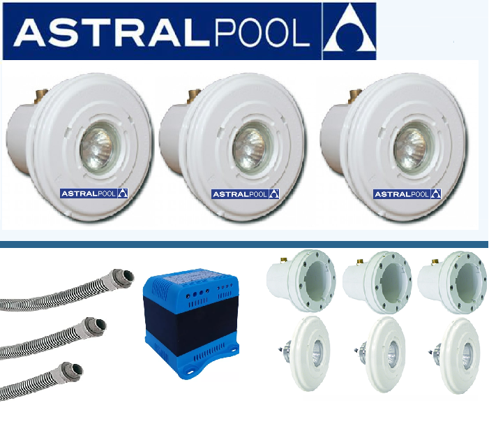 Acest kit de iluminare piscina vine in intampinarea celor care doresc un pachet complet cu lumina alba rece pentru piscine cu dimensiuni intre 40-60 mc.