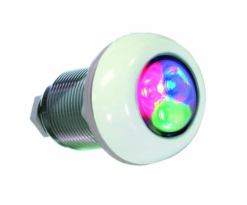 proiectoare cu lumină albă, supradimensionate în culori RGB. În piscinele de
