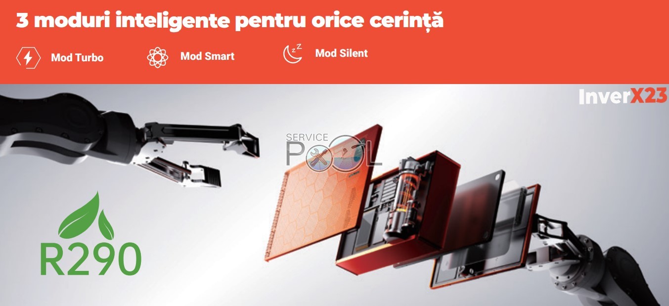 Tehnologia TurboSilence23, dezvoltată special pentru agentul frigorific R290, împreună cu un algoritm de control optimizat, asigură funcționare continuă și progresivă.