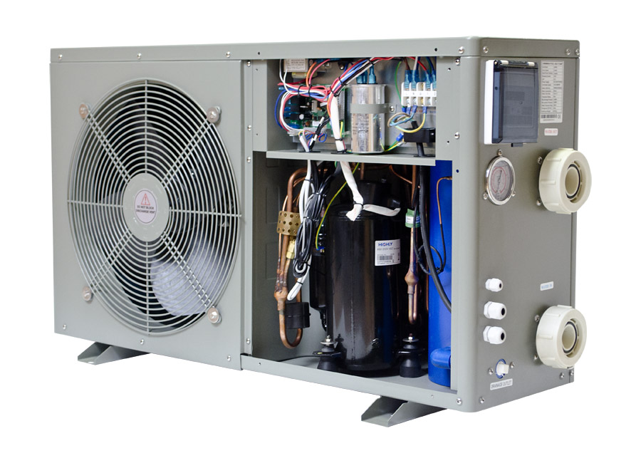piscina. In timpul functionarii, aceasta obtine caldura din atmosfera si o