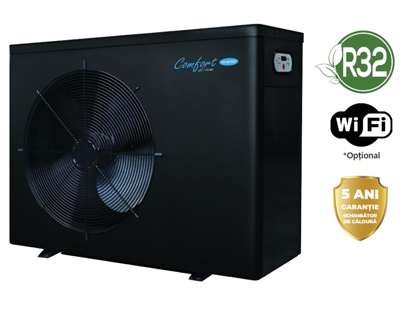 Pompa de caldura pentru piscina Inverter COMFORTLINE 17 kW este ideala pentru bazine mici si mijlocii. Aceasta gama ofera un raport calitate-pret imbatabil si este compatibila cu toate tratamentele chimice, deoarece schimbatorul de caldura din PVC si titan rezista la expunerea prelungita la clor sau sarea necesara pentru electrolizoare.