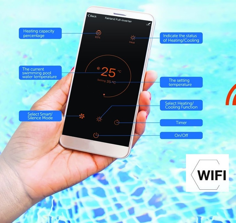 În baza unui randament MEDIU, la începutul sezonului pompa de caldura Full-inverter® va funcționa la capacitate de 100% pentru a încălzi piscina în primele zile. După aceasta, pompa de căldură Full-inverter® va funcționa la o capacitate medie de 50%, ca să mențină temperatura dorită a apei din piscină. În general, temperatura apei din piscină scade zilnic cu 0,5-1,5ºC, iar randamentul de 50% al pompei Full-inverter® este suficientă ca să încălzească apa din piscină cu 1,5-2,2 ºC, într-un interval de 15 ore, alegând tipul corespunzător al pompei.