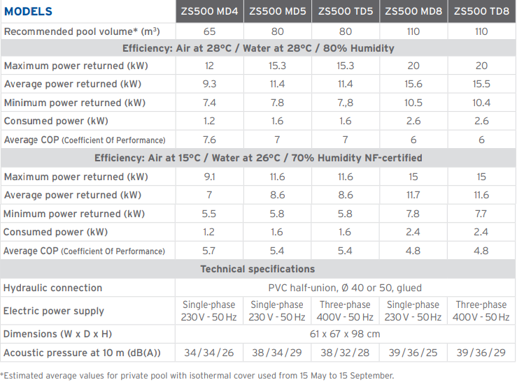 Maximum pool volume (m³) – 60-100 |