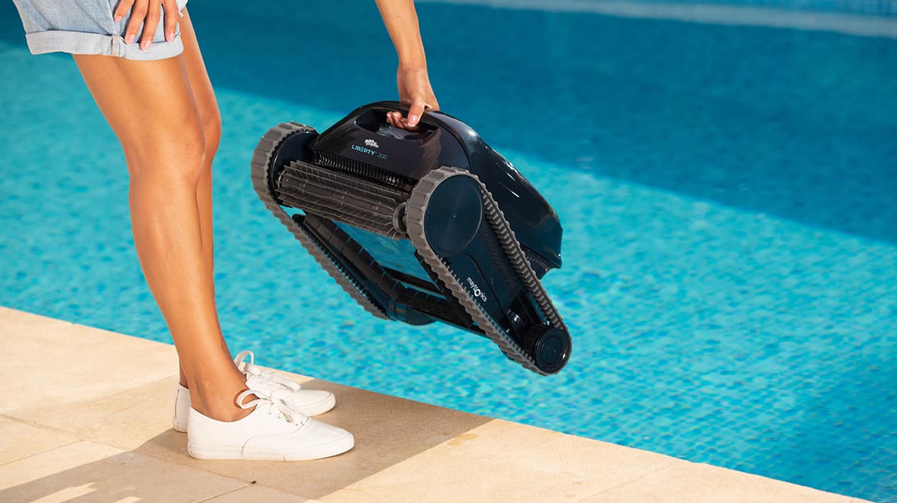 Depozitare: După fiecare ciclu de curățare a piscinei, scoateți robotul de piscină LIBERTY 400 din apă și depozitați-l departe de lumina directă a soarelui, căldură sau frig pentru a preveni uzura. Intervalul de temperatură recomandat de depozitare: -10°C până la +40°C: rece, dar ferit de îngheț și umiditate.