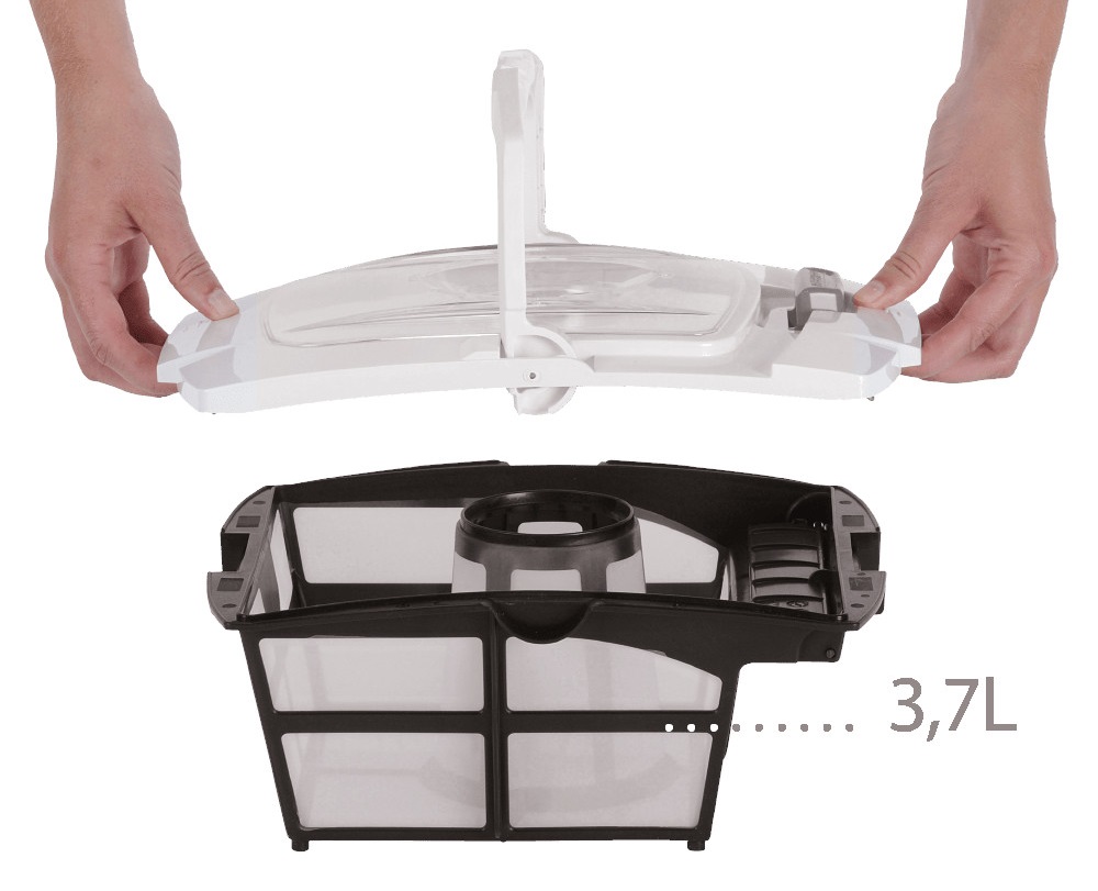 Saturarea filtrului se poate observa prin capacul transparent, cos filtru rigid de 3,7 litri, accesibil de sus, cu o finete de 100 microni.