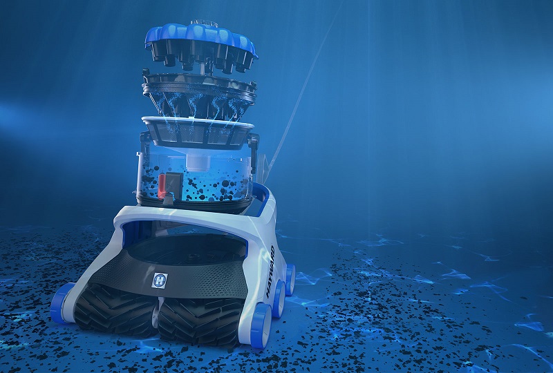 - Tracțiunea adaptivă HexaDrive™ navighează, urcă și freacă cu experiență toate suprafețele piscinei