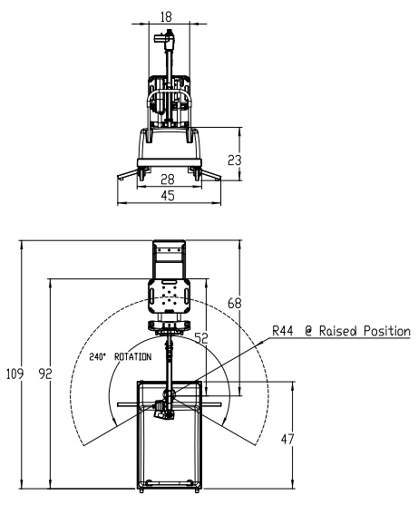 incluse. Are o capacitate de încărcare de 136 kg și o rază de rotire de 240 de