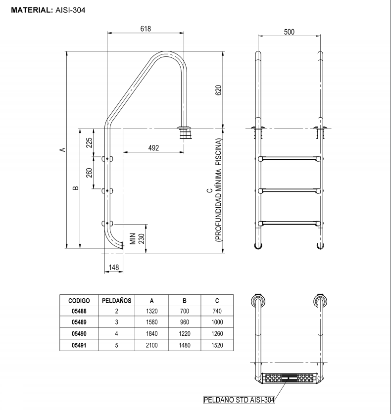 Scara pentru piscina cu 3 trepte model Standard, inox AISI 304 - Astralpool