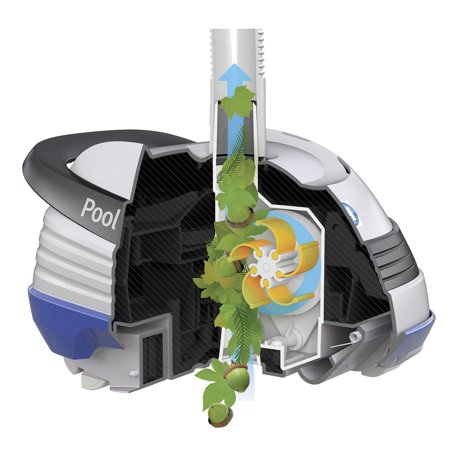 Tehnologia patentata V-Flex dispune de o turbina cu palete flexibile, care optimizeaza curatarea piscinei si capteaza resturile mai mari de murdarie.